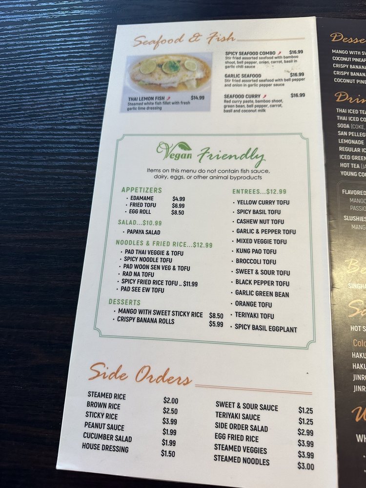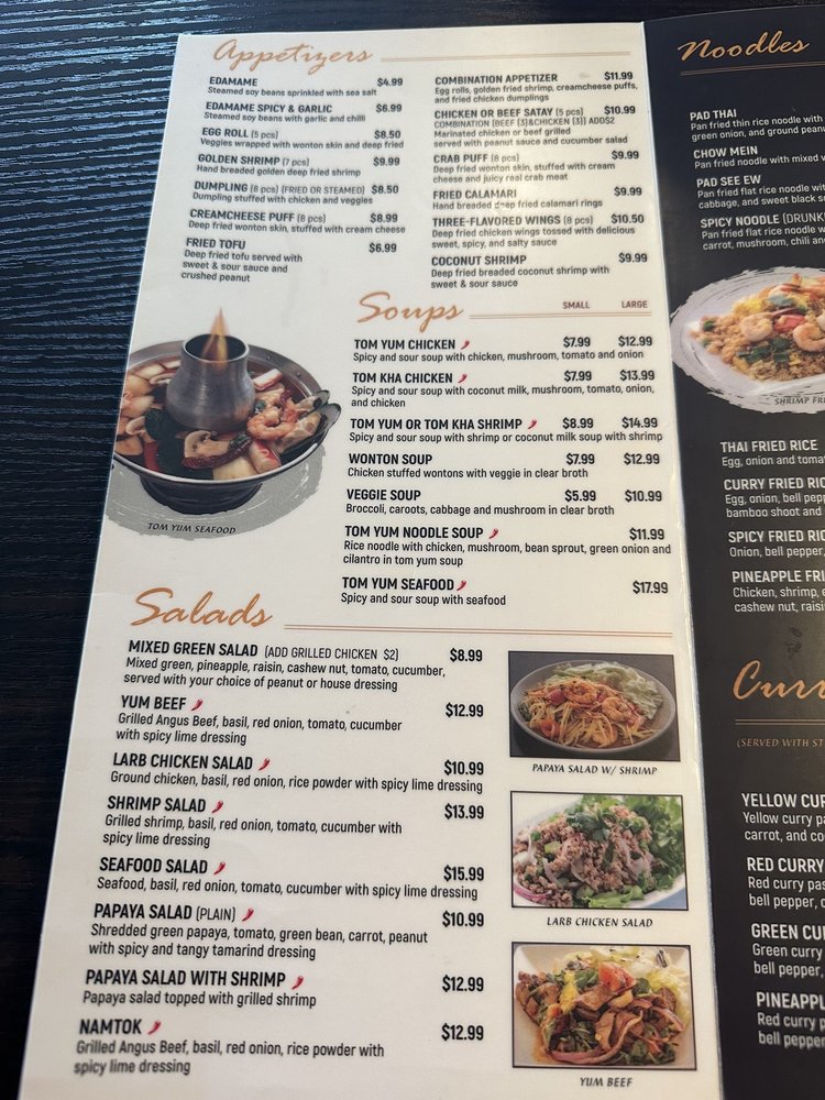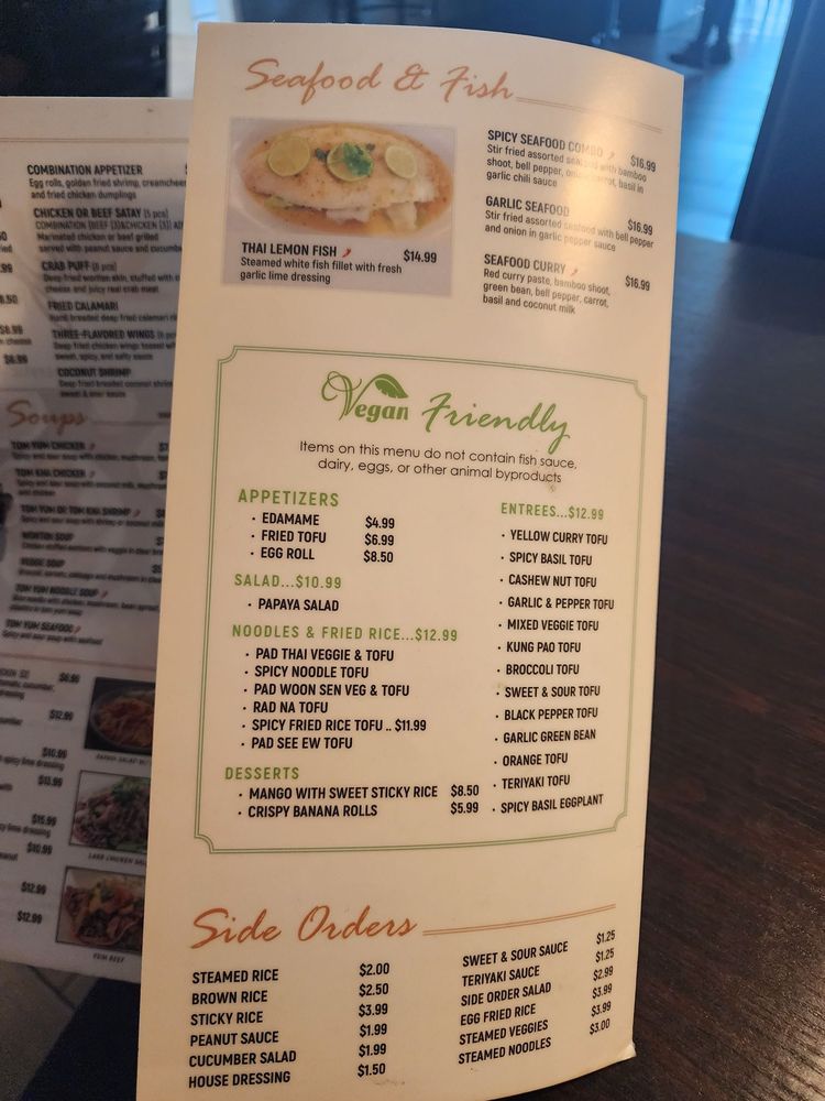 My Thai Restaurant in La Habra, CA, is a gem for Thai cuisine lovers. The restaurant offers a range of vegan and vegetarian options, along with traditional favorites like Pad Thai and Green Curry. Customers rave about the delicious food, friendly service, and fresh ingredients. The lunch specials are a highlight, offering generous portions at fair prices. The Tom Yum Soup with Shrimp and Larb Chicken Salad are particularly recommended. With a gender-neutral restroom, outdoor seating, and happy hour specials, My Thai Restaurant caters to a diverse clientele. Whether you're a vegan, vegetarian, or meat-eater, this restaurant has something for everyone. Don't miss out on this culinary experience in a quiet and spacious ambiance. Plan your visit to explore the flavors of Thailand at My Thai Restaurant.